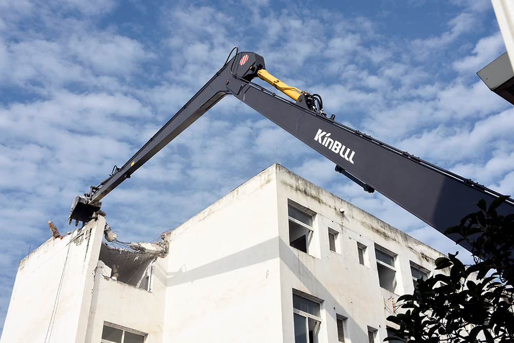 日前,勤牛最新研發的36T兩段式加長臂履帶式挖掘機,迎來了出產以來的首次實地作業。高帥如它,未負重托,以相較普通挖掘機一倍增速的效率,圓滿完成了辦公樓的拆解任務。 現場見證,超長型加長臂矯健靈活、升級版斗桿伸縮自如、加強型挖斗強悍有力,強強聯合,無需移動便可輕松解體遠處建筑物,作業時間大大縮短,施工效率倍速提高;搭配力學性能可靠的穩重機身,安心又舒適;此外,加長臂能夠更好的對駕駛人員起到保護作用,有效防止重物墜落砸傷作業人員。此次小試牛刀,該機高效、便利、環保、安全等優勢凸顯。一舉數得,勤牛加長臂助您事業騰飛一臂之力!