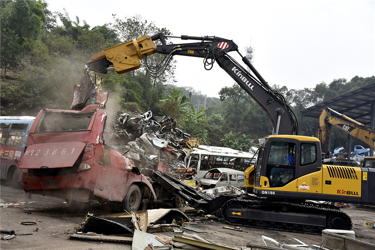 ? ? ?積極響應國家號召,投身于城市環保、垃圾分類等成套設備研發的勤牛,所生產的報廢機動車拆解設備,憑借威猛靈活的拆車液壓剪和雙折線型的刀具設計,搭配獨特設計的前端固定爪,成為現代化報廢汽車拆解的首選。